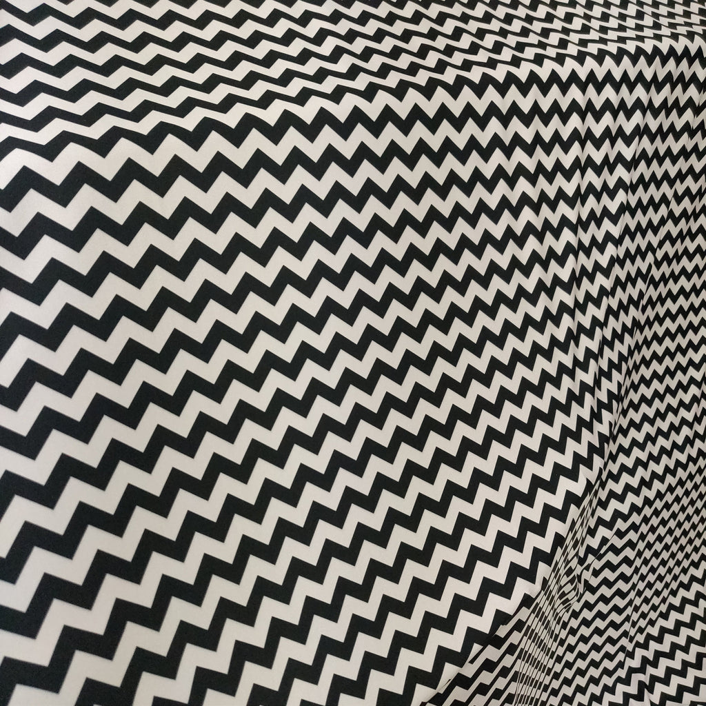 Chevron Print on Poly Spandex Fabric (White/Black) (4 Way Stretch/Per Yard)
