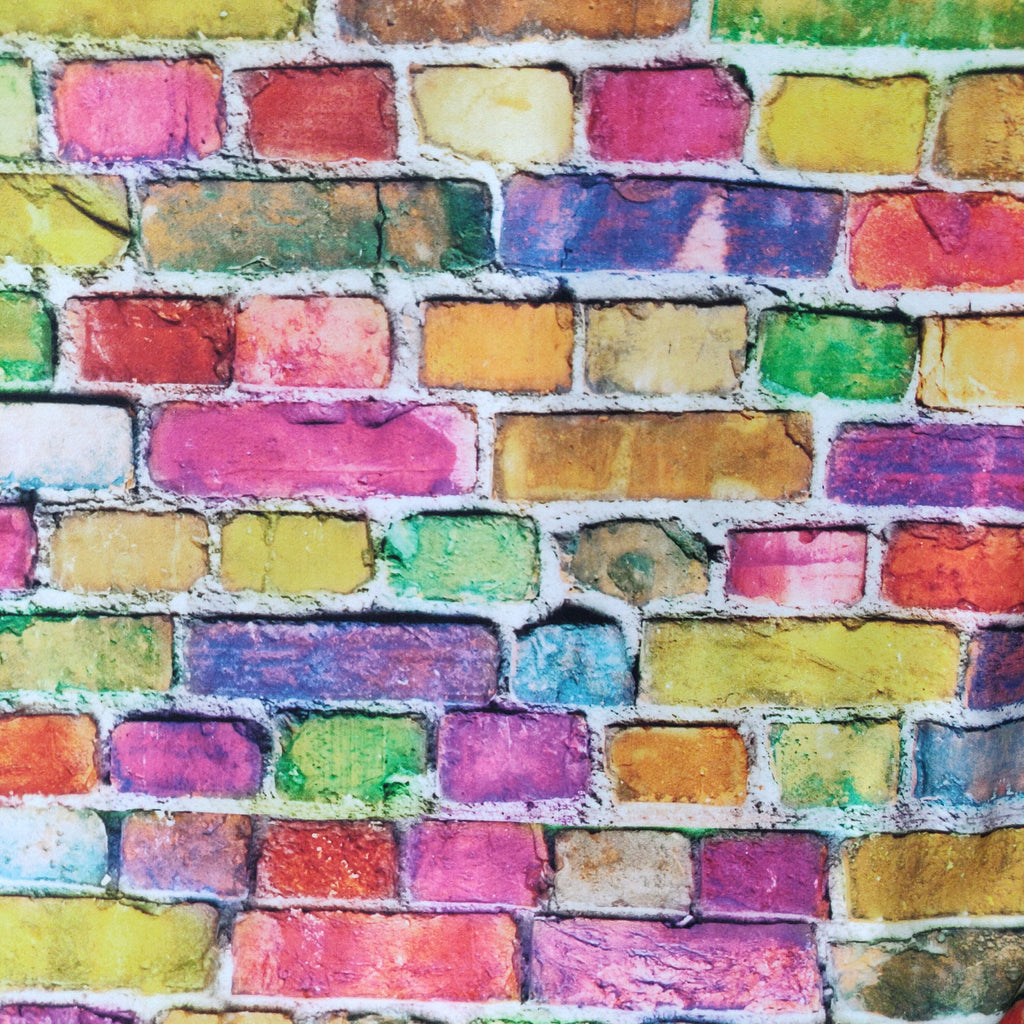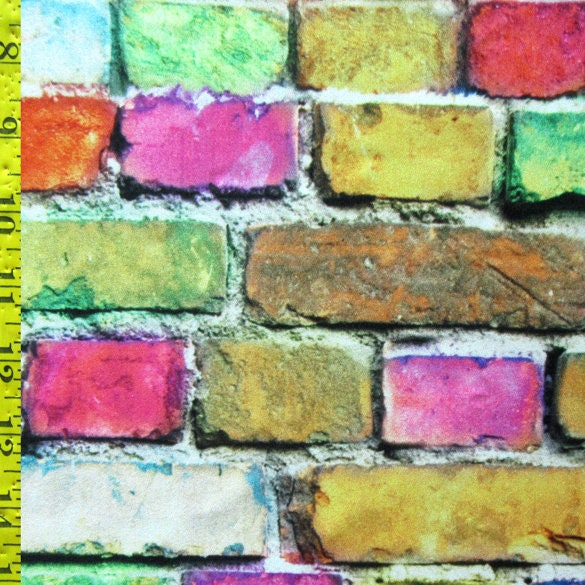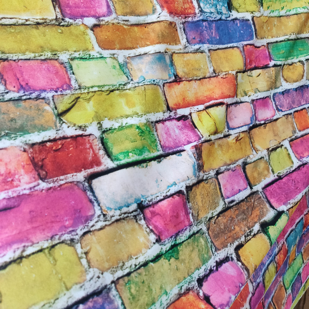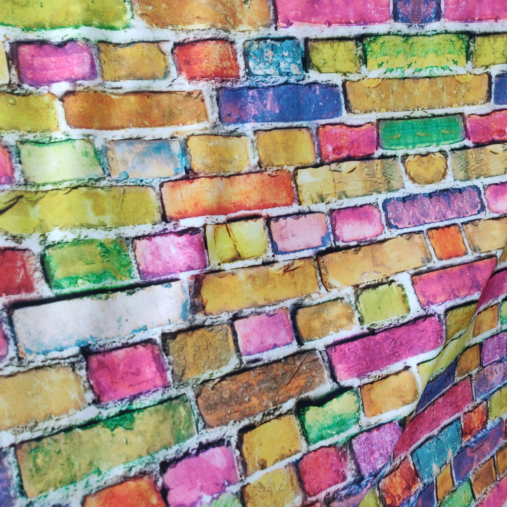 Colorful Brick Wall Print on Poly Spandex Fabric (4 Way Stretch/Per Yard)