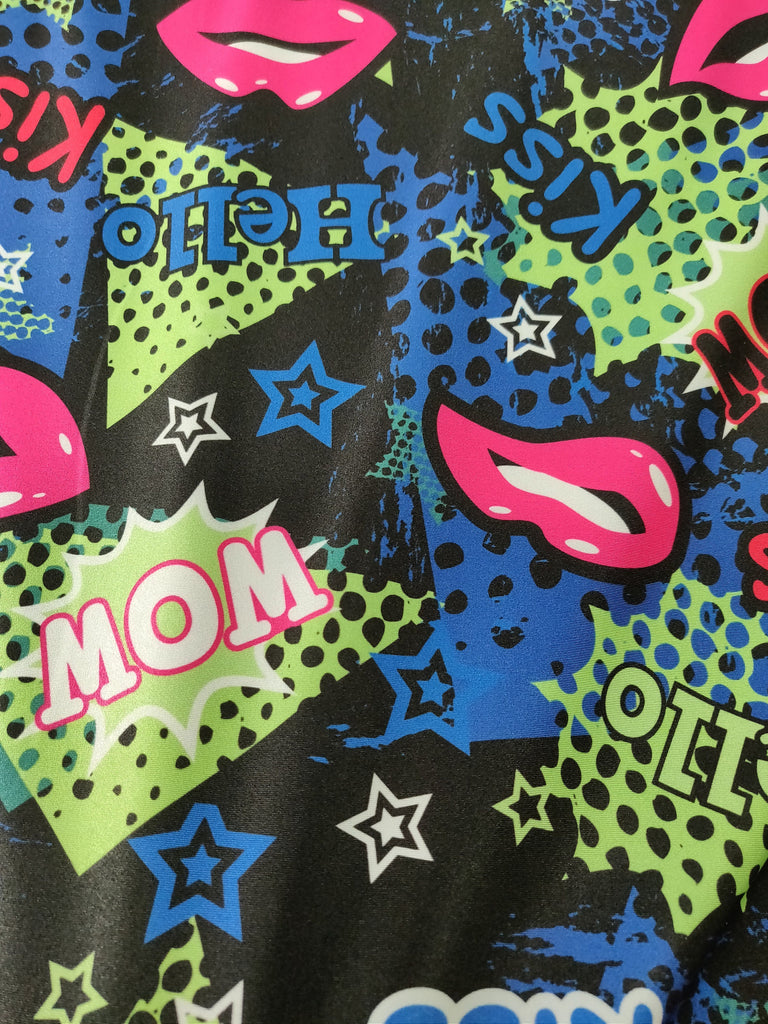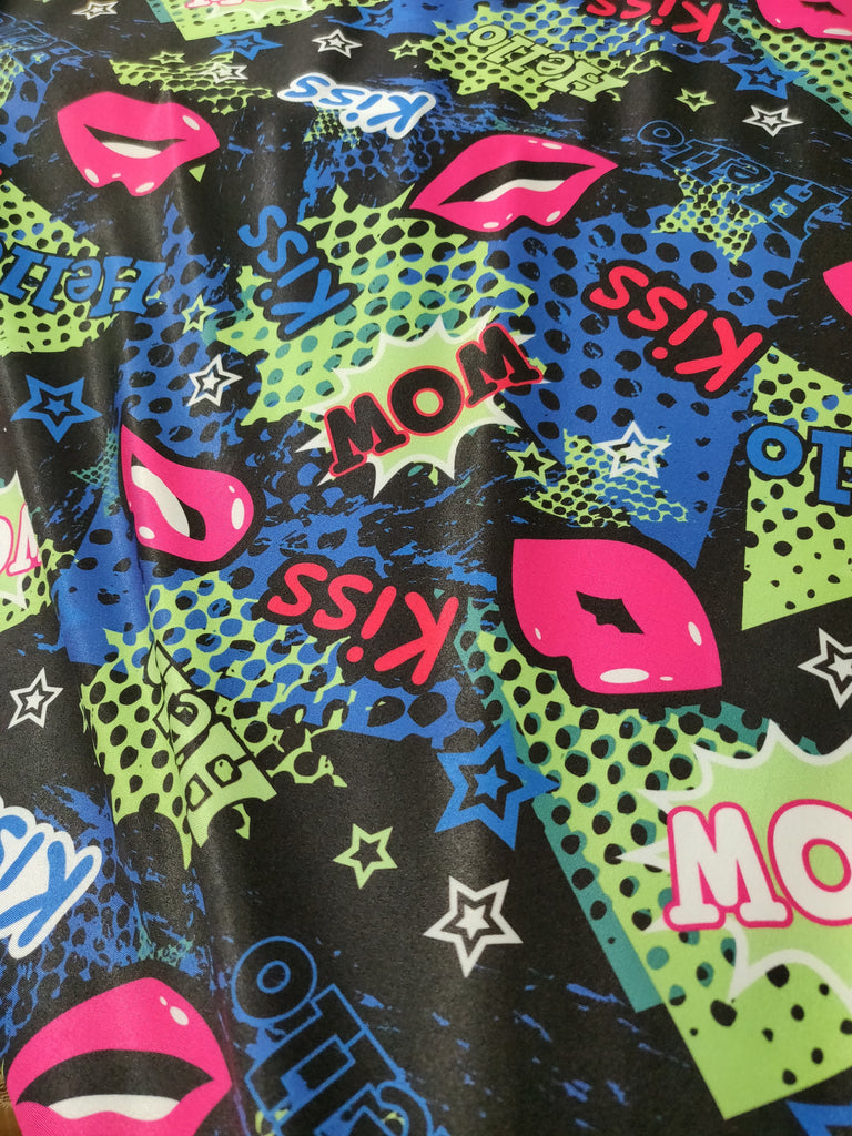 Comic Style Speech Bubble Print on Poly Spandex Fabric (4 Way Stretch/Per Yard)