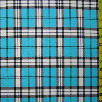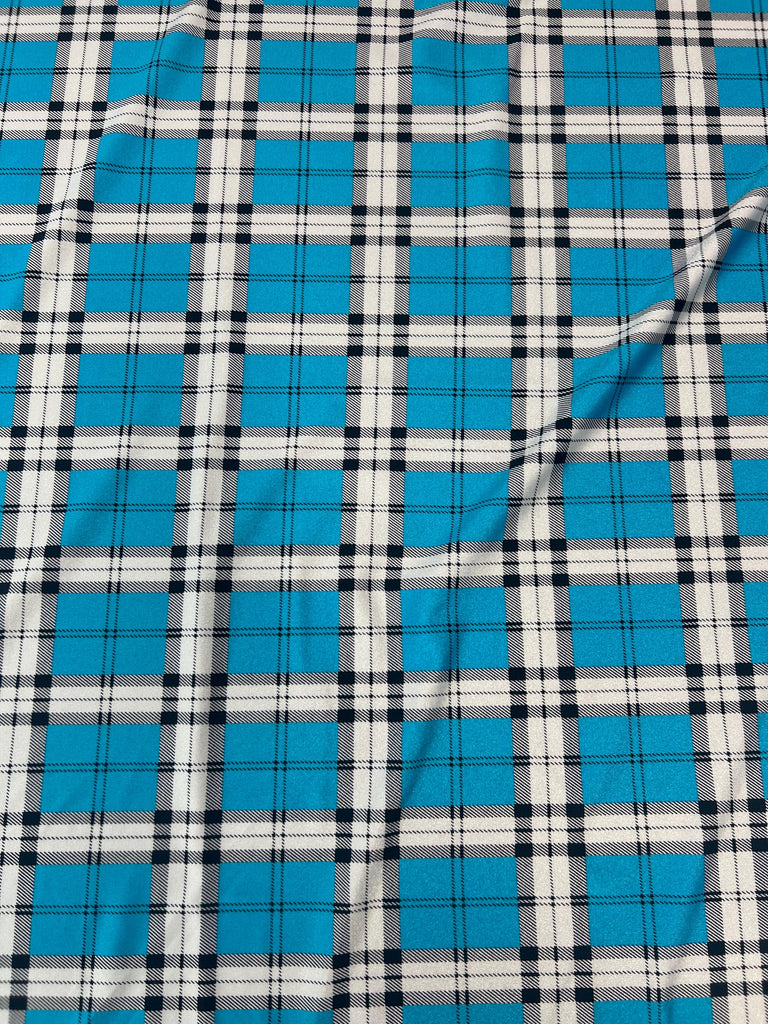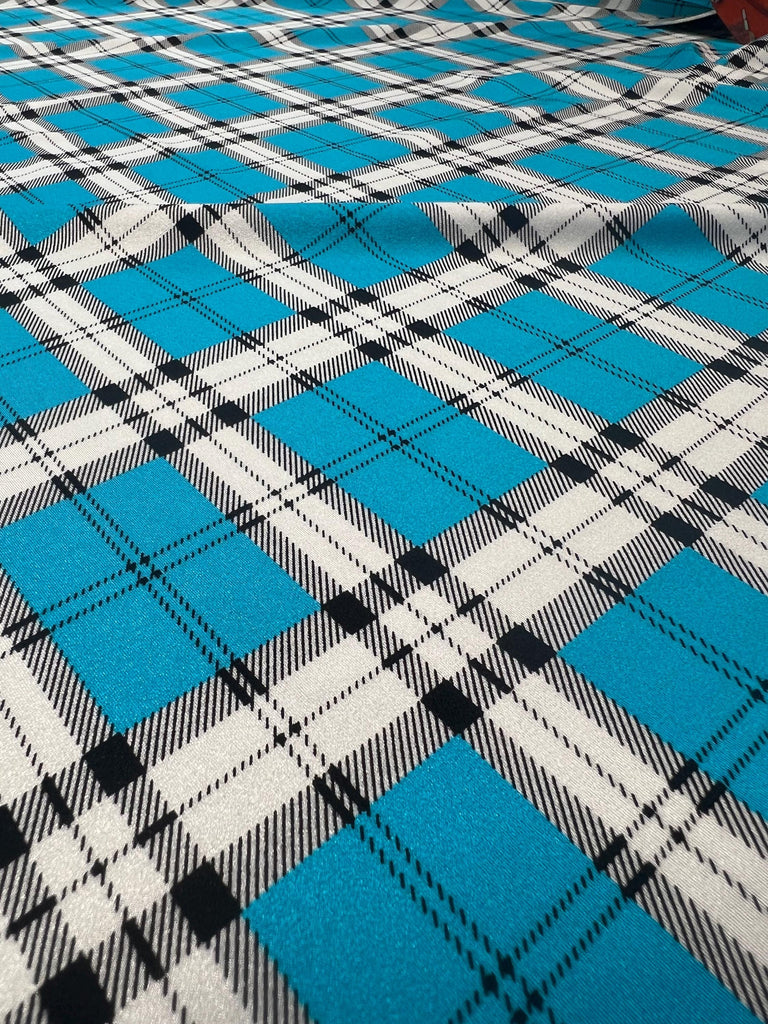 Designer Plaid Print on Nylon Spandex Fabric (Turquoise) (4 Way Stretch/Per Yard)
