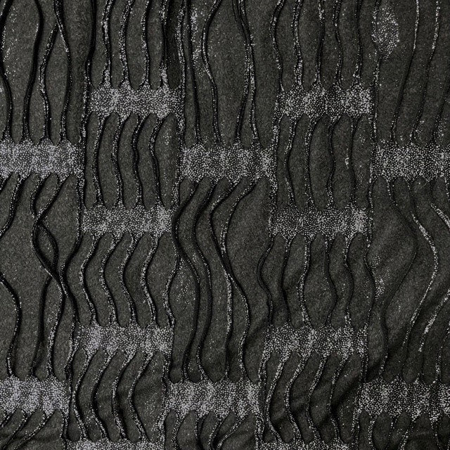 Distressed Print with Glitter on Poly Knit Fabric (Black/Silver) (4 Way Stretch/Per Yard)