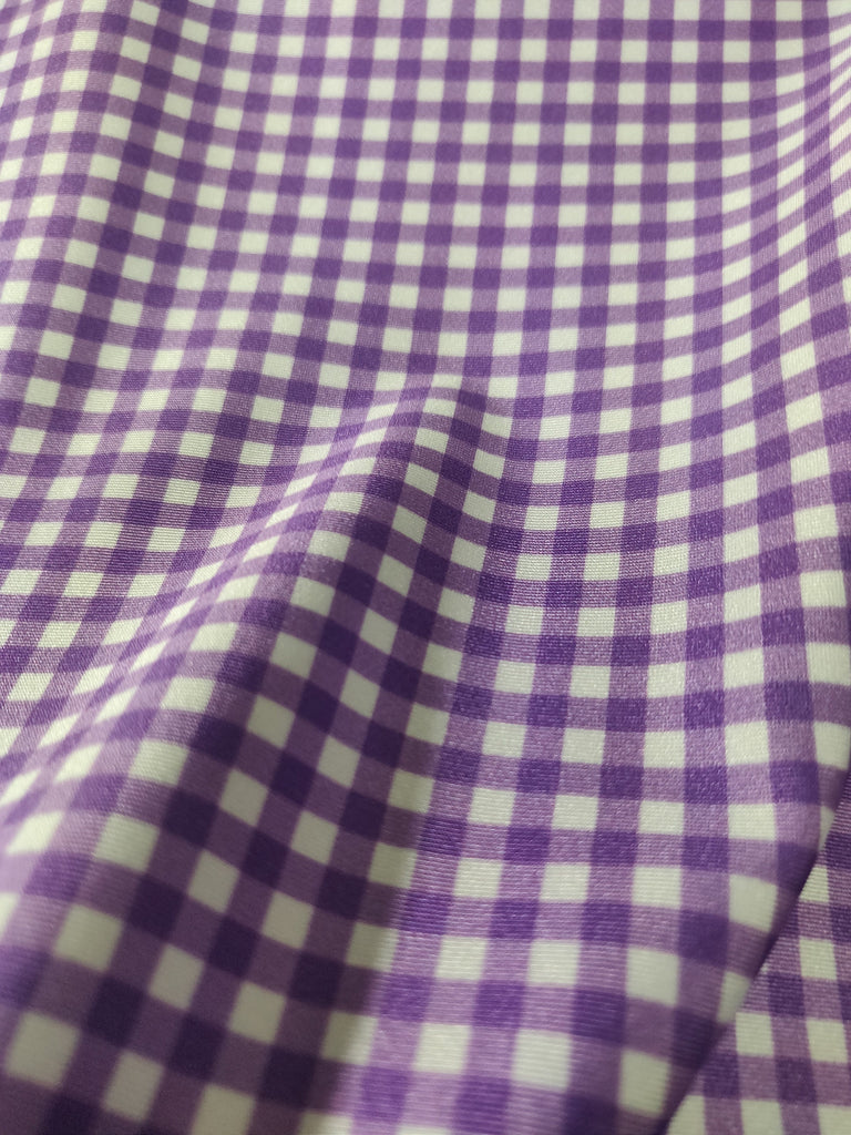 Gingham Print on Poly Spandex Fabric (Lavender) (4 Way Stretch/Per Yard)