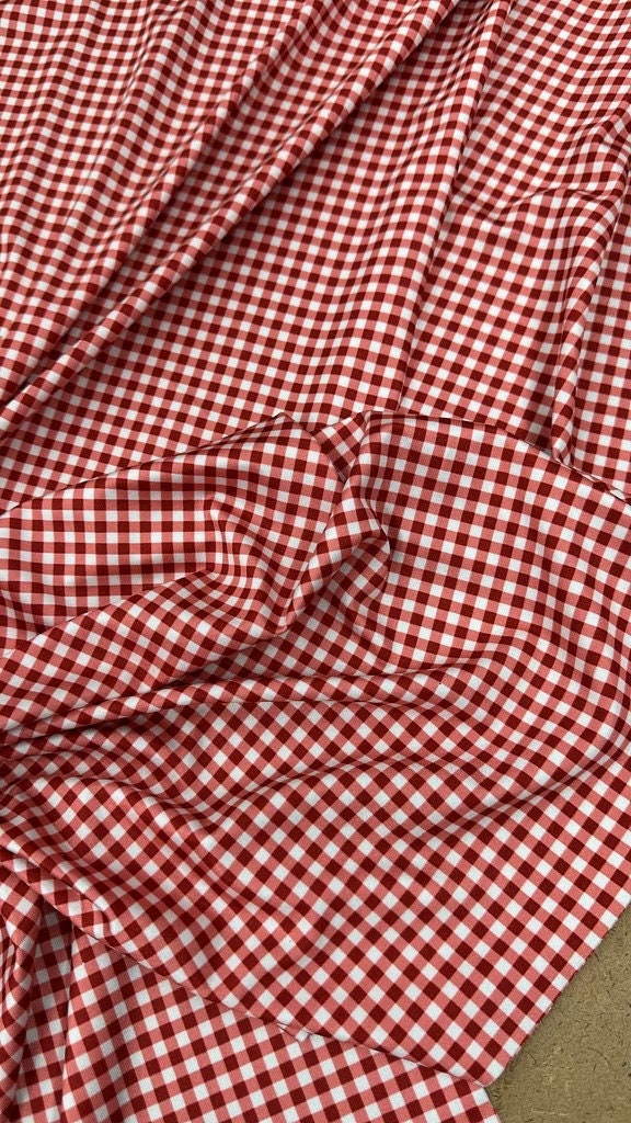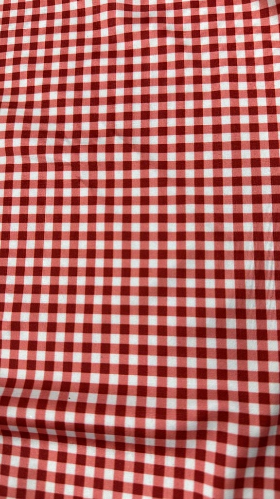 Gingham Print on Poly Spandex Fabric (Red) (4 Way Stretch/Per Yard)