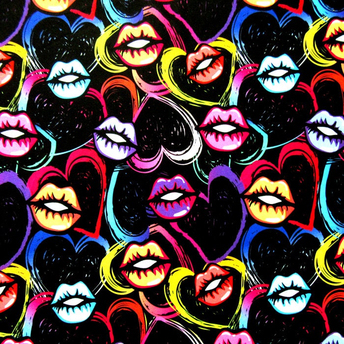 Hearts and Kisses Print on Poly Spandex Fabric (4 Way Stretch/Per Yard)