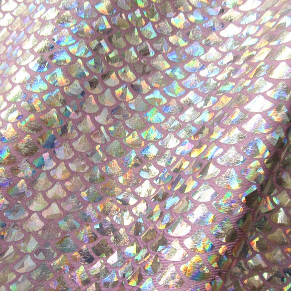Holographic Mermaid Print on Poly Spandex Fabric (Silver/Orchid) (4 Way Stretch/Per Yard)