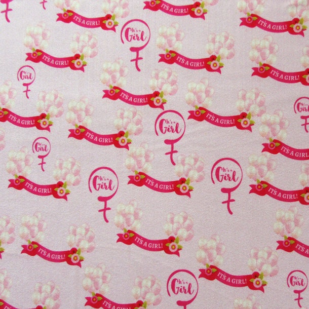 It's A Girl Baby Shower Print on Poly Spandex Fabric (4 Way Stretch/Per Yard)