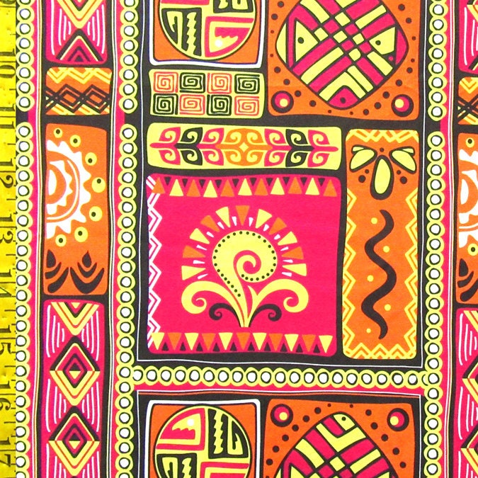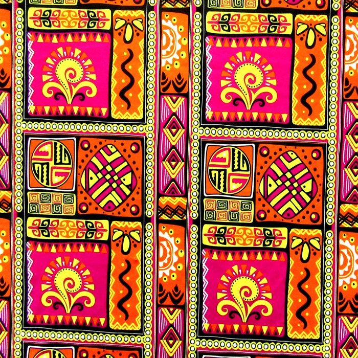 Colorful Abstract Print on Poly Spandex Fabric (Fuchsia/Orange) (4 Way Stretch/By The Yard)