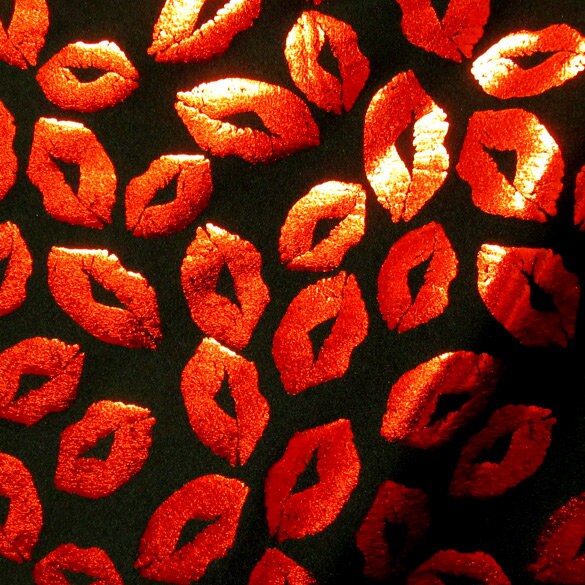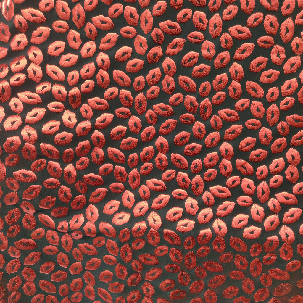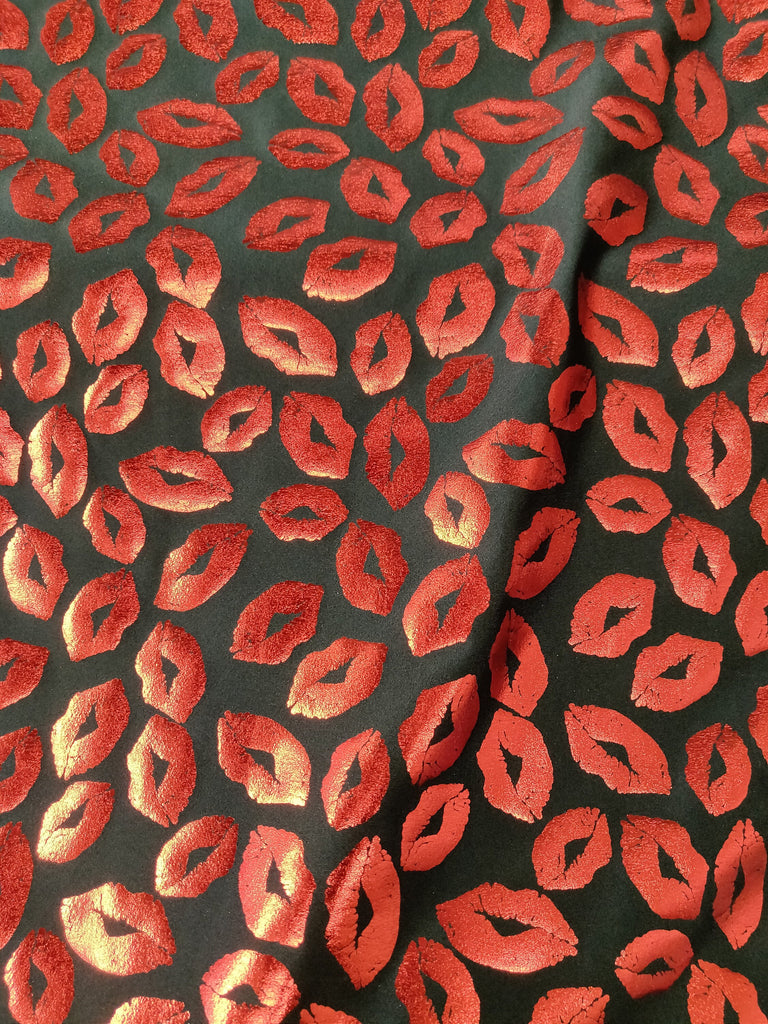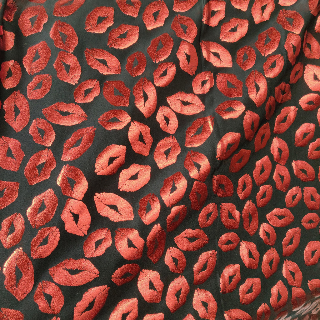 Metallic Foil Lip Print on Poly Spandex Fabric (Red/Black) (4 Way Stretch/Per Yard) **LIMITED**