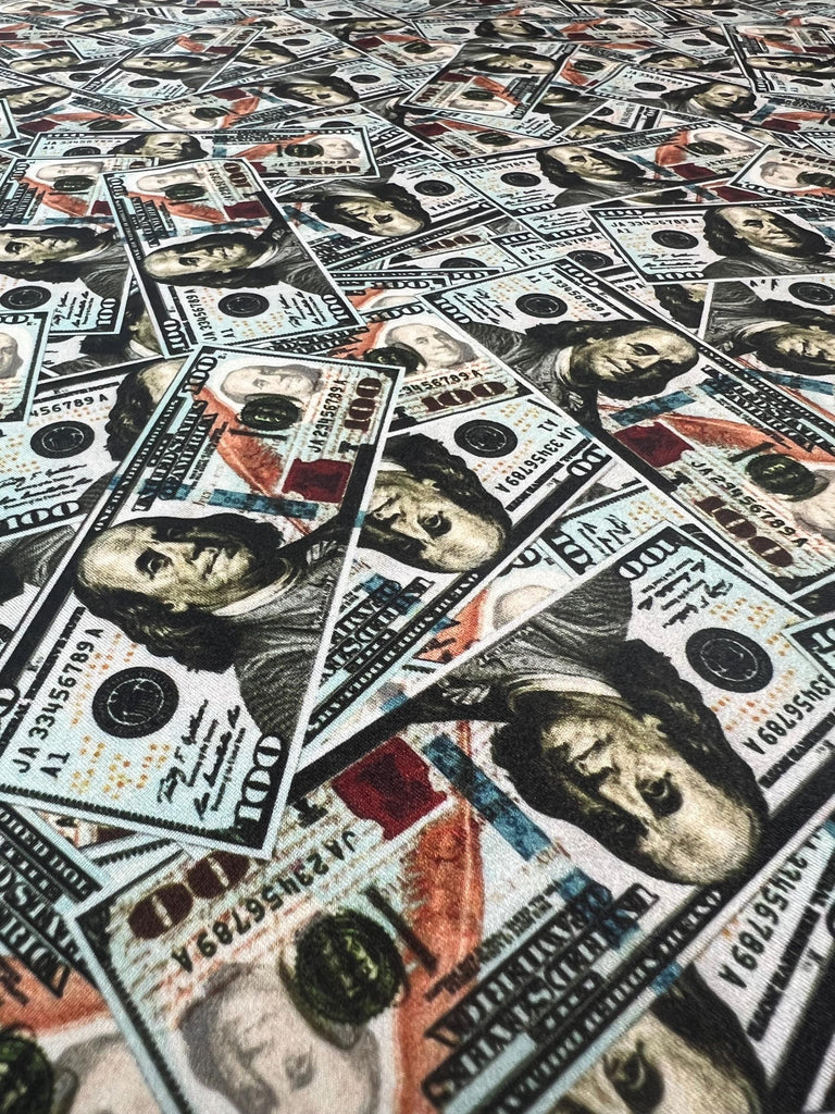 Money Print (100 Dollar Bill) on Poly Spandex Fabric (4 Way Stretch/Per Yard)