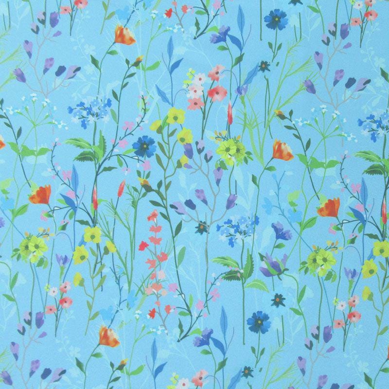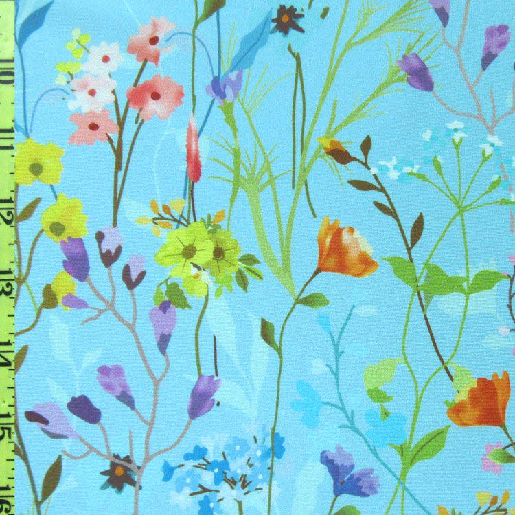 Multiverse Floral Print on Poly Spandex Fabric (Sky Blue) (4 Way Stretch/Per Yard)