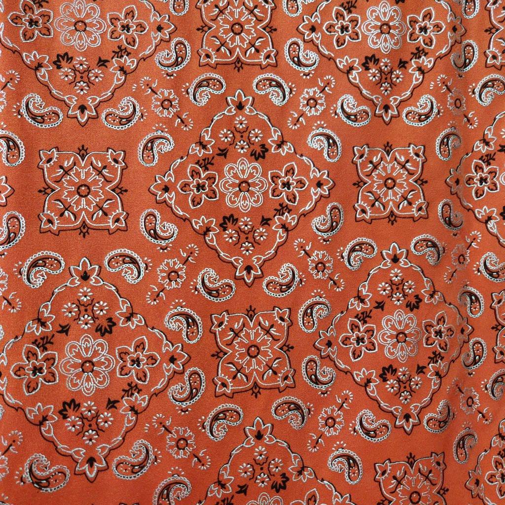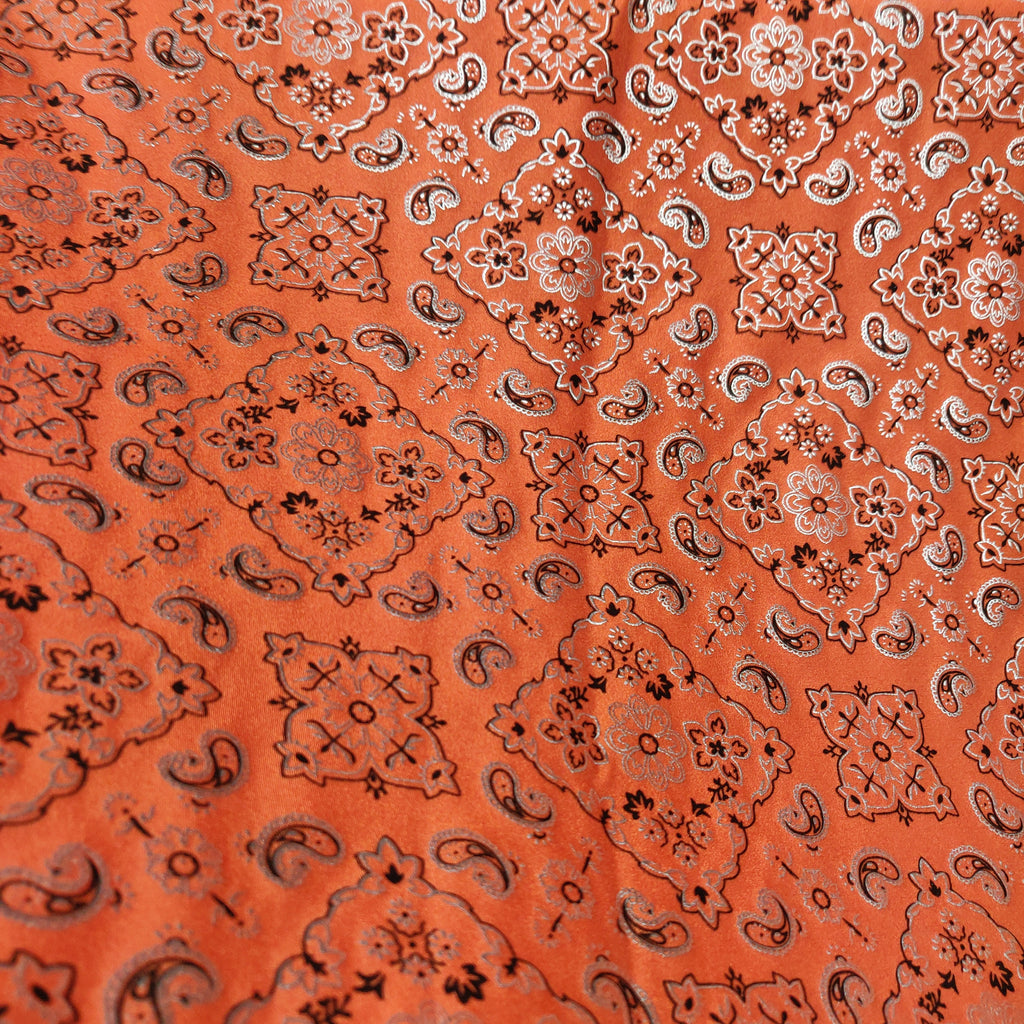 Paisley Printed with Foil on Poly Spandex Fabric (Silver/Orange) (4 Way Stretch/Per Yard)