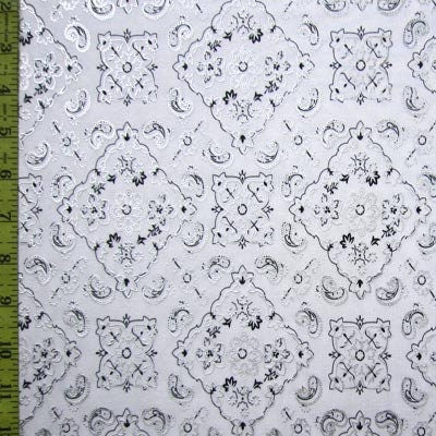 Paisley Printed with Foil on Poly Spandex Fabric (Silver/White) (4 Way Stretch/Per Yard)