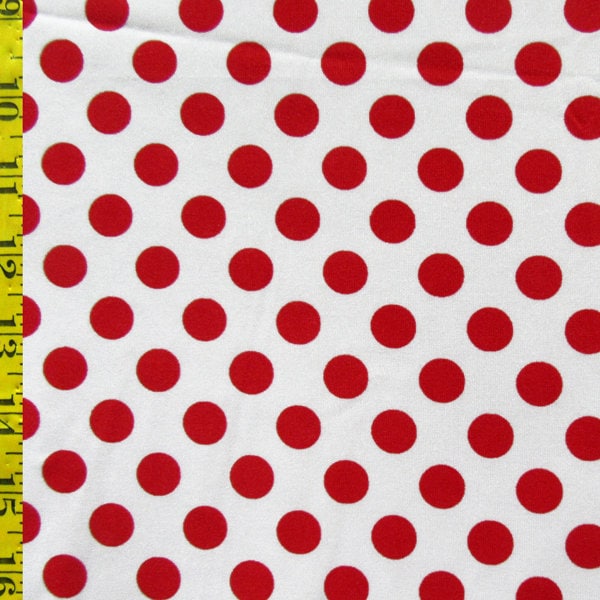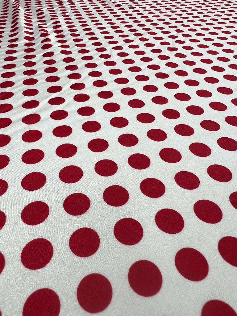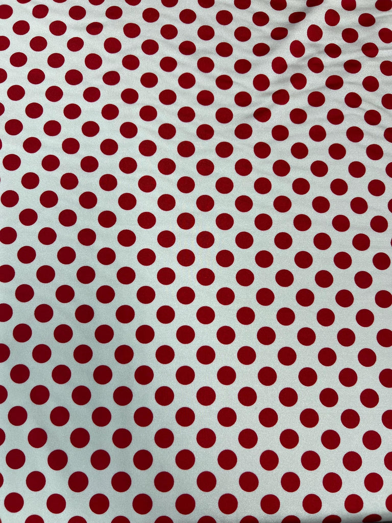 Polka Dot Print on Nylon Spandex Fabric (Red/White) (2 Way Stretch/Per Yard)