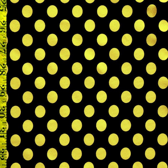 Polka Dot Print on Poly Spandex Fabric (Yellow/Black) (4 Way Stretch/Per Yard)