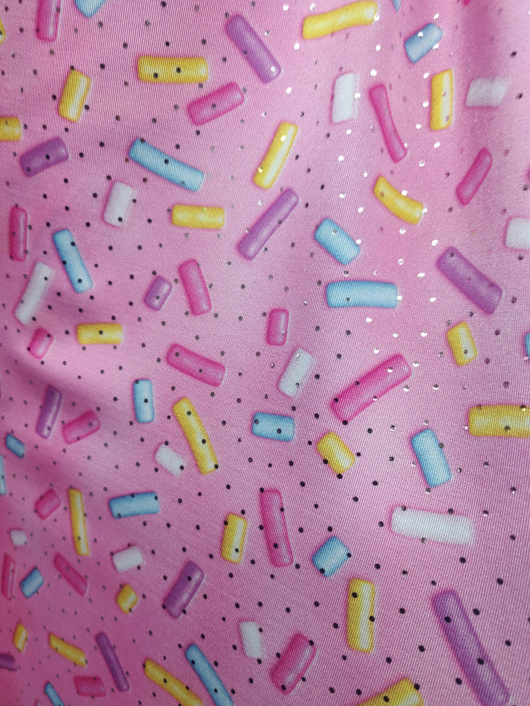 Sprinkle Print on Poly Spandex Fabric (Pink) (4 Way Stretch/Per Yard)