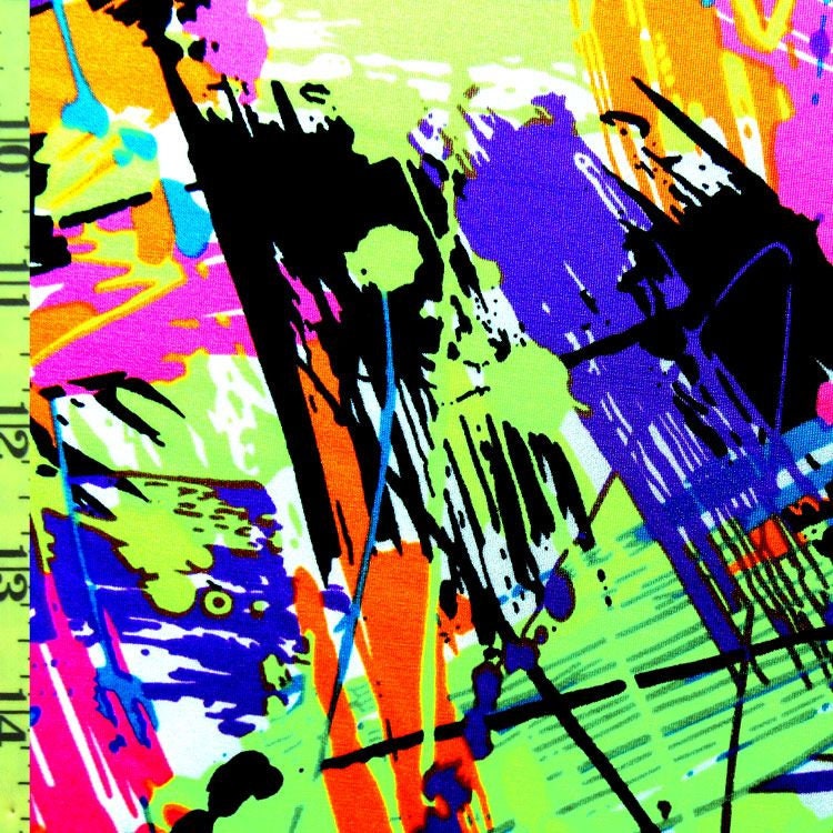 Vintage 80s Splatter Printed on Poly Spandex Fabric (2 Way Stretch/Per Yard)