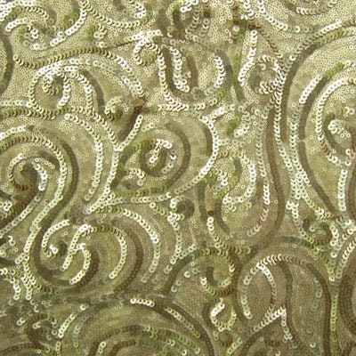 Paisley Sequins on Poly Mesh Fabric (Light Gold/Ivory) (Non Stretch/Per Yard)
