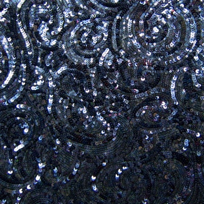 Paisley Sequins on Poly Mesh Fabric (Navy Blue/Black) (Non Stretch/Per Yard)