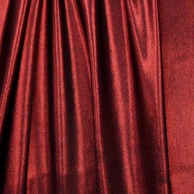 This particular version is red colored foil on black colored slinky. Our metallic slinky fabric is one of our biggest standouts. They are a favorite because the fabric is super stretchy and can easily retain its shape & stretch even if you were to crumple it. The metallic foil finishing is perfect for those who want vibrant colors that sparkle. This could be perfect for a dress, curtains, and etc. You definitely won't be disappointed and we guarantee this is of the highest quality.