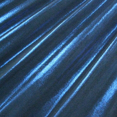 This particular version is royal blue colored foil on black colored slinky. Our metallic slinky fabric is one of our biggest standouts. They are a favorite because the fabric is super stretchy and can easily retain its shape & stretch even if you were to crumple it. The metallic foil finishing is perfect for those who want vibrant colors that sparkle. This could be perfect for a dress, curtains, and etc. You definitely won't be disappointed and we guarantee this is of the highest quality.