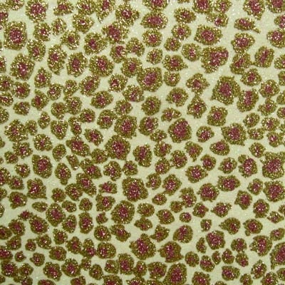 Leopard Spots with Holographic Glitter Printed on Rough Finished Cracked Ice Print w/ Vinyl Backing (Ivory/Gold/Pink) (Per Yard)