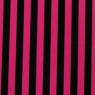 0.5" (Half Inch) Vertical Stripes on Poly Spandex Fabric (Black/Fuchsia) (4 Way Stretch/Per Yard)