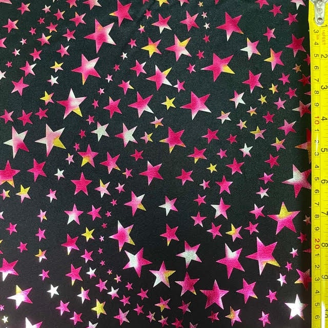 Star with Metallic Foil on Poly Spandex Fabric (Hot Pink/Black) (4 Way Stretch/Per Yard)