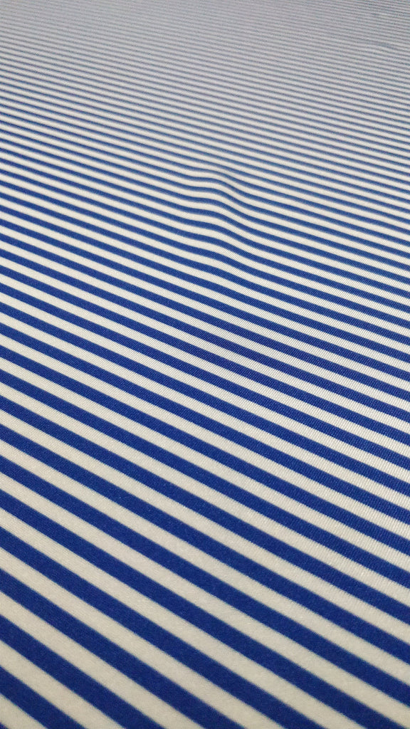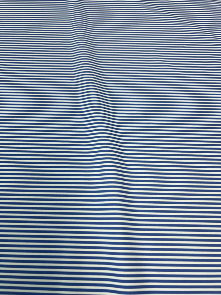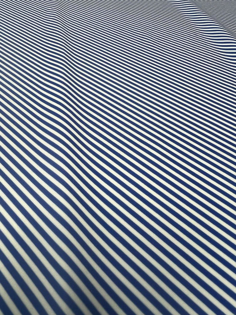 Vertical Stripes on Poly Spandex Fabric (White/Royal Blue) (4 Way Stretch/Per Yard)