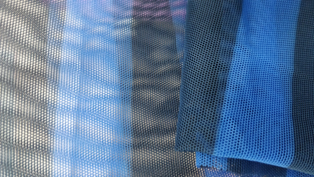 The stripes on this fabric is 1" (inches) and they come in such beautiful color ways . This print sits on a polyester mesh to give you that maximum breathability. Meshes & sheer fabrics allow t...