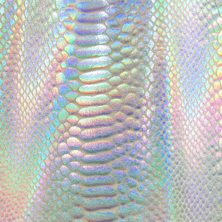 Holographic Ombre Snake Skin Print on Nylon Spandex Fabric (Silver/White) (4 Way Stretch/Per Yard)