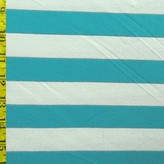 Horizontal Stripes on Cotton Spandex Fabric (White/Turquoise) (4 Way Stretch/Per Yard)