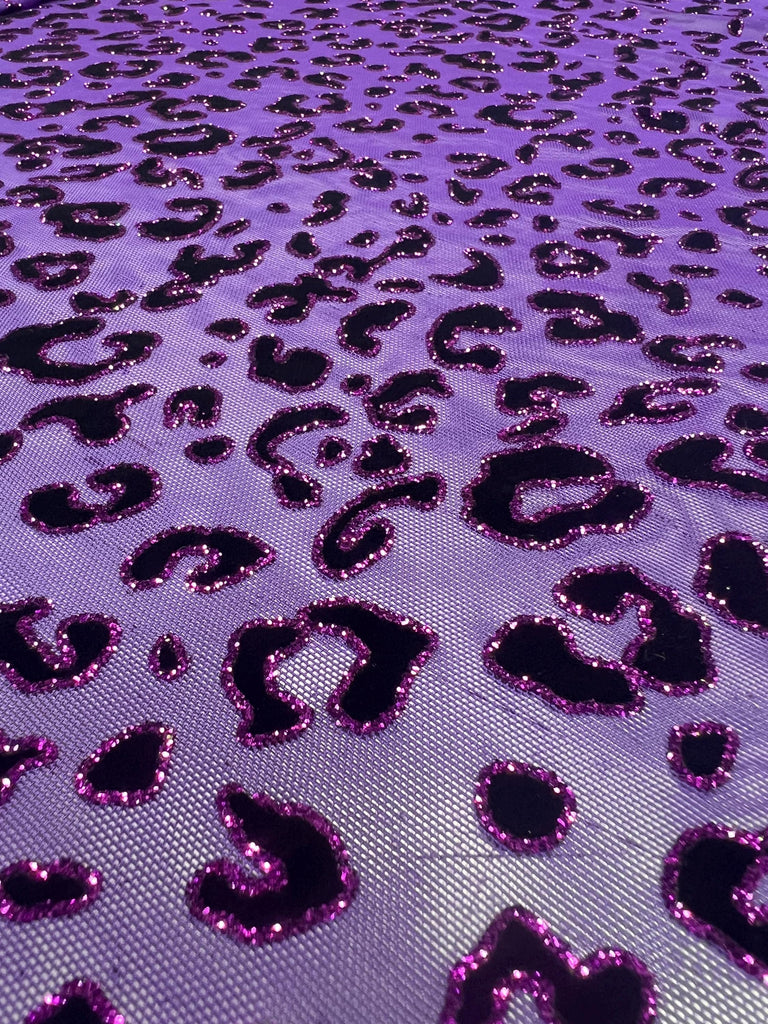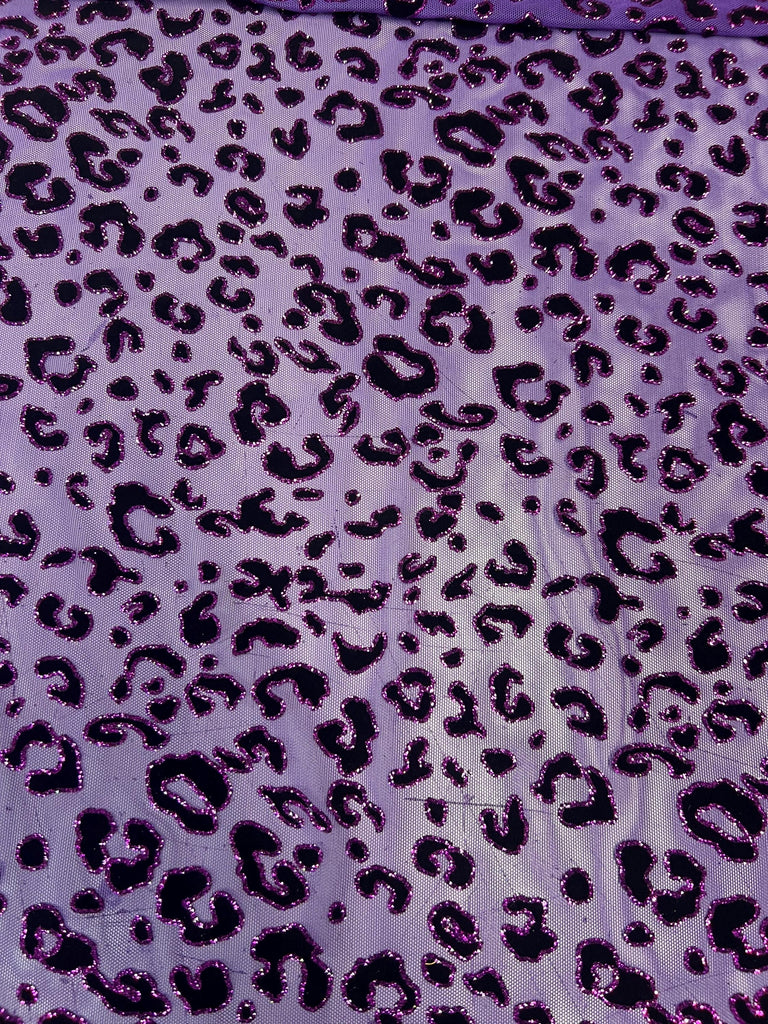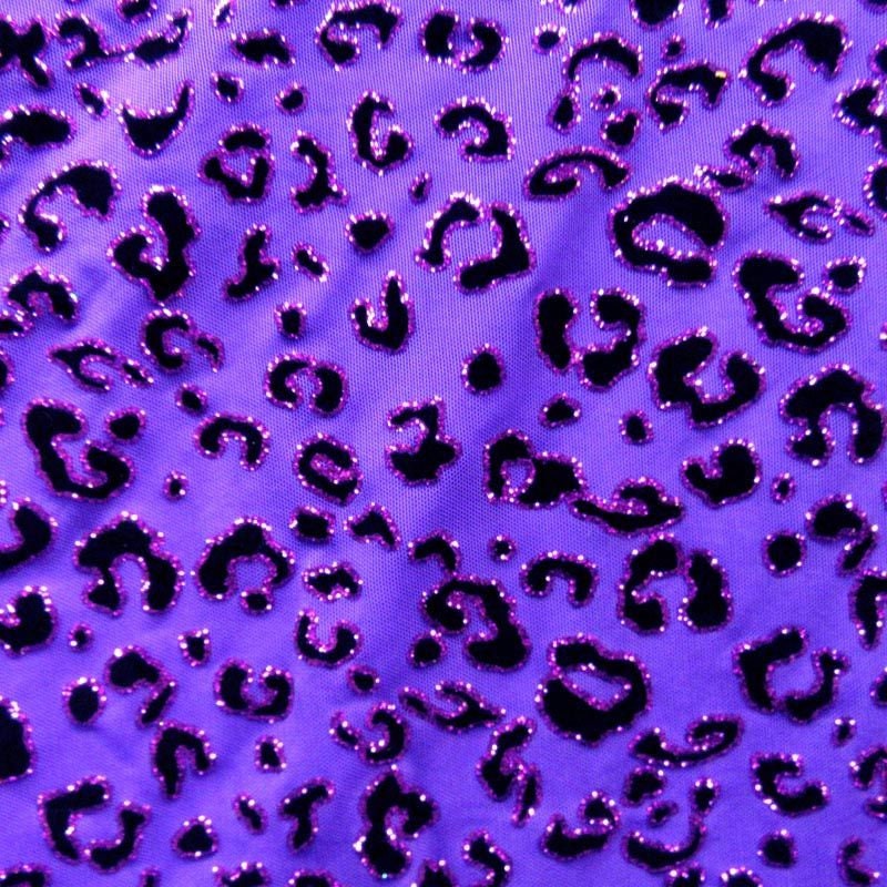 Leopard Print with Purple Glitter on Stretch Mesh Fabric (2 Way Stretch/Per Yard)
